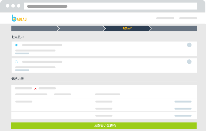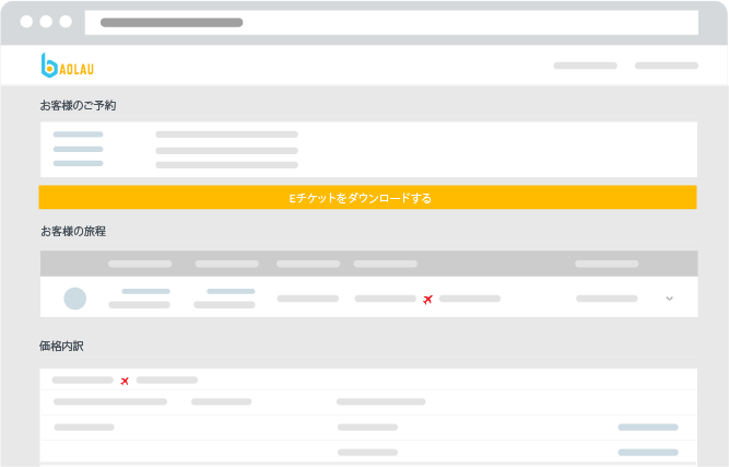 旅程と価格内訳をご確認していただき、ご予約情報が正しく表示されいることをお確かめください。