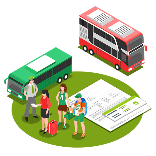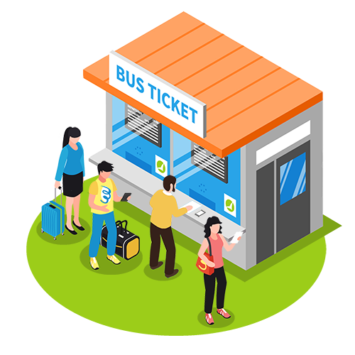 มาถึงสถานีขนส่งก่อนเวลาออกดินทาง 60 นาที หากจำเป็นให้แสดงตั๋วอิเล็กทรอนิกส์ของคุณที่เคาเตอร์ขายตั๋วและรับตั๋วรถบัสของคุณ