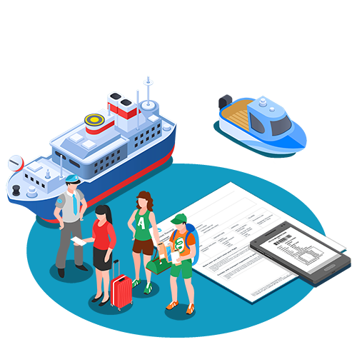 มาถึงท่าเรือก่อนเวลาออกเดินทาง 60 นาที หากจำเป็นโปรดแสดงตั๋วอิเล็กทรอนิกส์ของคุณที่สำนักงานขายตั๋วที่ได้รับอนุญาตและรับตั๋วเรือเฟอร์รี่ของคุณ
