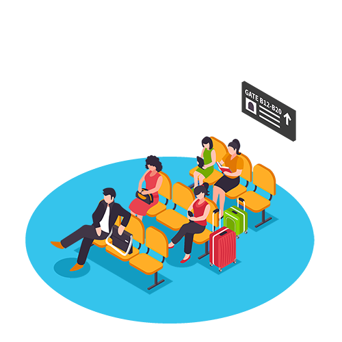 ปฏิบัติตามขั้นตอนการรักษาความปลอดภัยของสนามบินและขึ้นเครื่องบินโดยใช้หนังสือเดินทาง / บัตรประจำตัวประชาชนและตั๋วโดยสารของคุณ