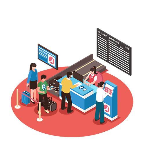 แสดงตั๋วอิเล็กทรอนิกส์ของคุณที่เคาน์เตอร์เช็คอินสนามบินหรือใช้ตู้เช็ดอินด้วยตัวเอง แล้วเก็บตั๋วโดยสารของคุณ