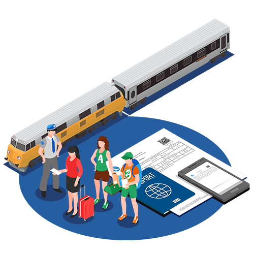 แสดงสำเนาตั๋วอิเล็กทรอนิกส์ของคุณต่อเจ้าหน้าที่ตรวจสอบก่อนขึ้นรถไฟ คุณอาจต้องแสดงหนังสือเดินทาง / บัตรประจำตัวประชาชนและยืนยันรหัสประจำตัวของคุณ